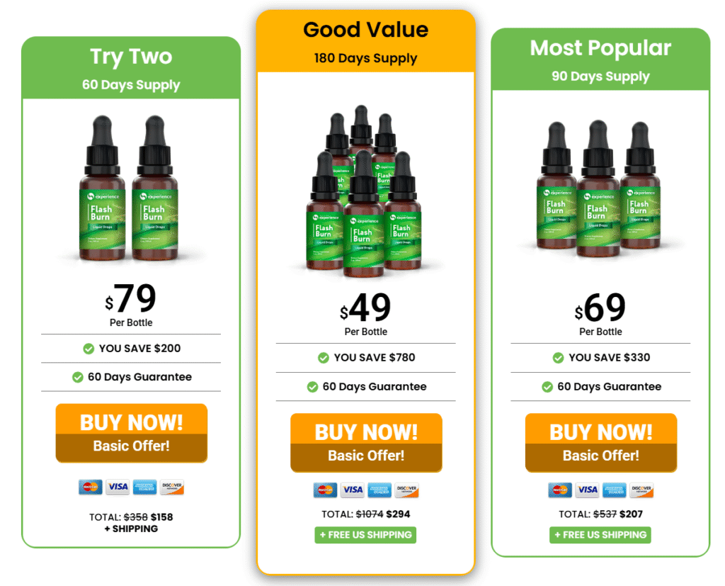 Currently, Flash Burn is backed by a 60-day money-back guarantee. Free shipping is available on select multi-bottle packages, along with additional discounts.