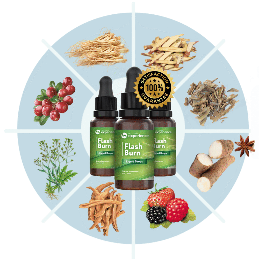 Flash Burn combines carefully selected ingredients at optimal concentrations — such as green tea extract, African mango, and other natural compounds — to support thermogenesis, balance hunger hormones, and improve fat metabolism.